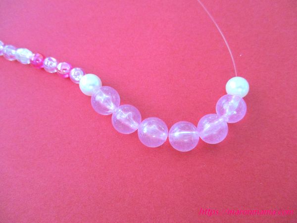 3、ちょうど真ん中に差し掛かる手前くらいから、大きめのビーズを通します。