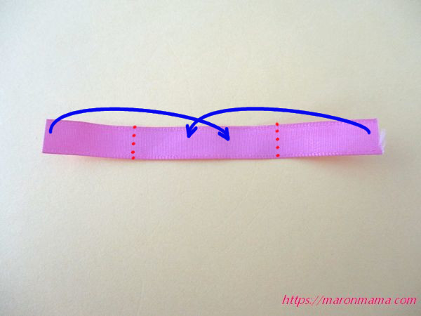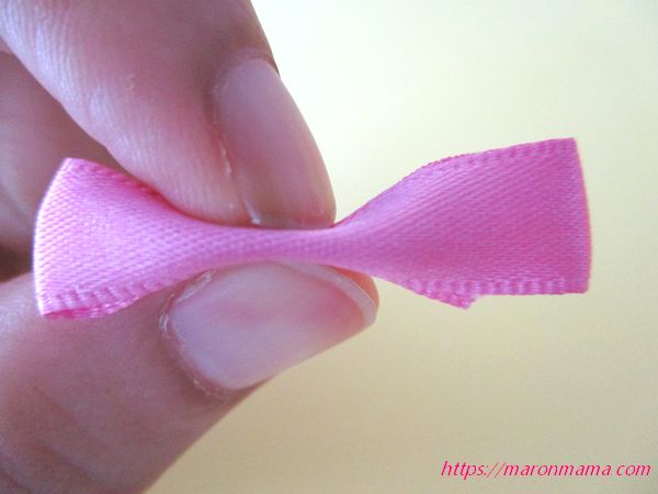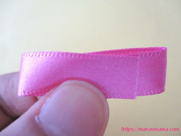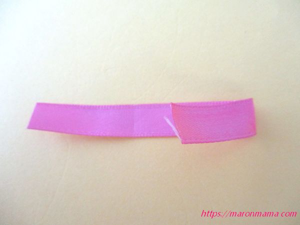 1、リボンを両端から約2.5㎝のところで折ります。