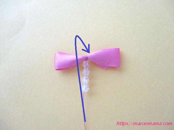 リボンまで作るのがちょっと大変だなっと思った方は、アクセントになるかわいい大きめのビーズを付けるのもオススメです。