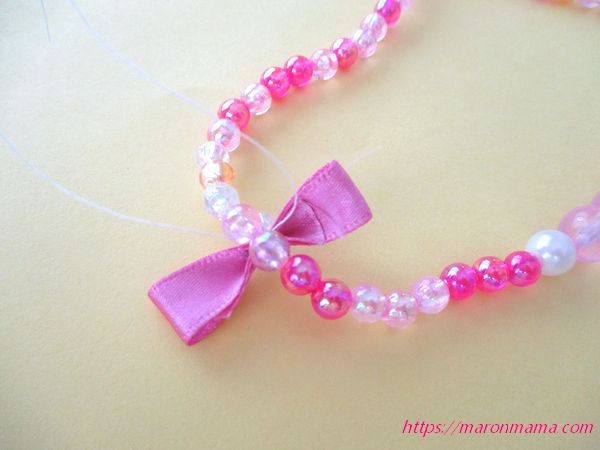 ビーズネックレスに付けるリボンの作り方