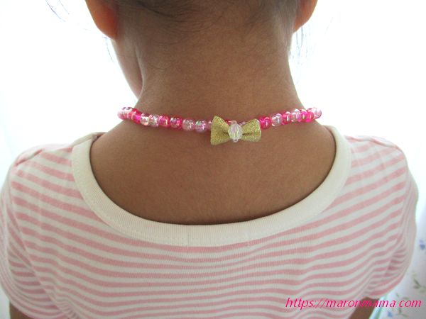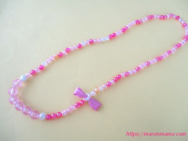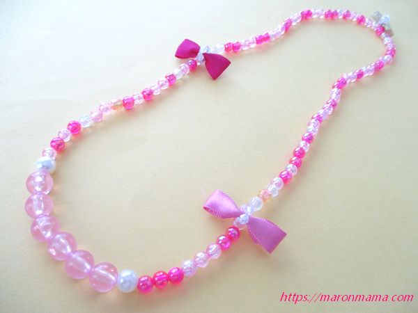 7、リボン付きの可愛いビーズネックレスの完成です♪