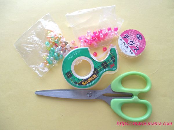 お好みの色や形のビーズを準備してくださいね。