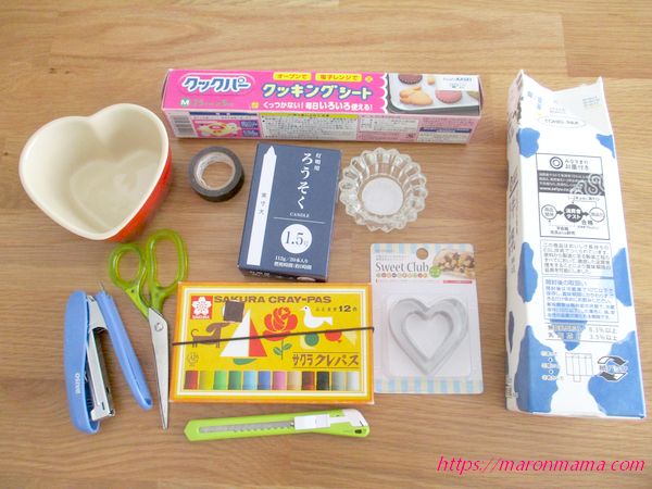 1層のより簡単なキャンドルから2層の牛乳パックを使って作るキャンドル、2層でハートの型でくり抜くキャンドルの3種類を作ってみました。