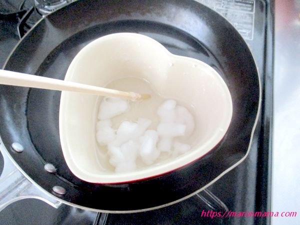 6、ろうそくを湯銭で溶かします。