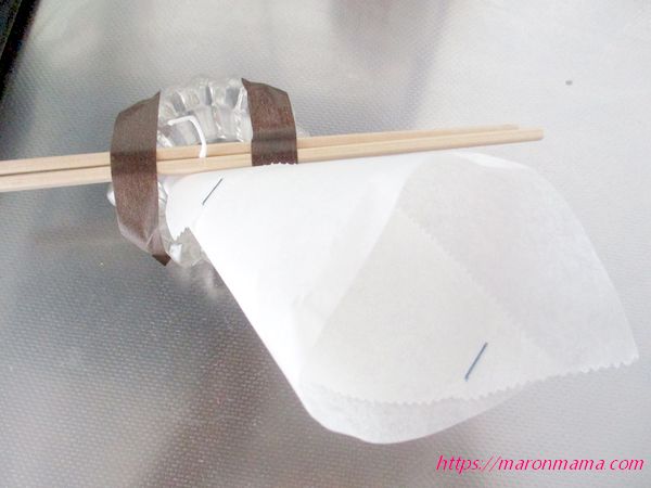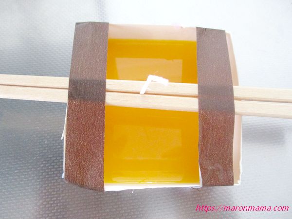 8、固まったら、割りばしとマステを取り除きます。