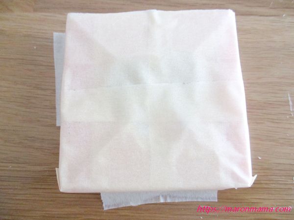 4、くりぬいた方のキャンドルの裏側を、しっかりとマスキングテープでふさぎます。
