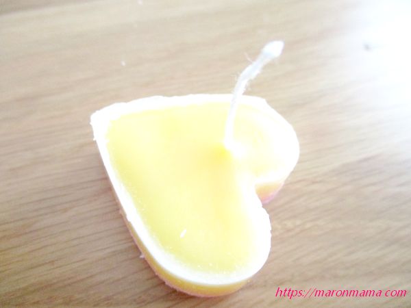 3、かわいいハート型の手作りアロマキャンドルの完成です♪