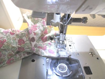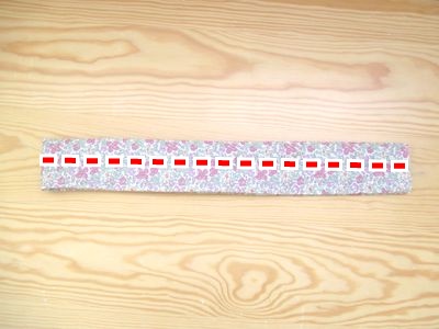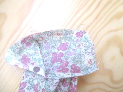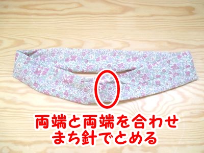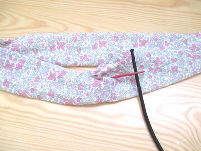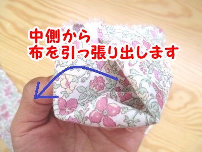 このとき、ゴムより布の方が長いので、ゴムが全部布の中に入り込まないように注意して下さい。
