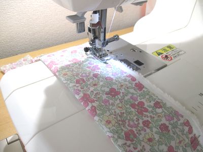 8、端から約1㎝のところをミシンで縫います。(手縫いでもOK)