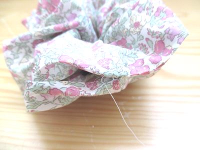 まつり縫いしたところが気になるようなら、輪っかを内側に持ってくると、外側より、よりクシャクシャっとなっているので、縫い目がほとんど目立ちません。