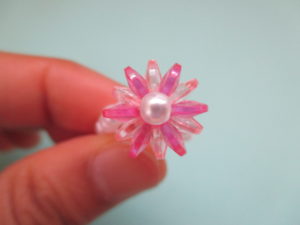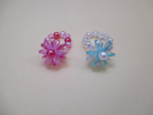 フラワービーズ2種類を使うことで、簡単に可愛いお花の指輪を作ることができます♪
