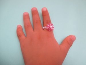 そこで、可愛いフラワービーズを購入したので、早速娘にビーズの指輪を作ってみました。