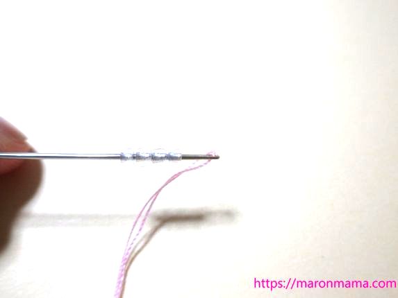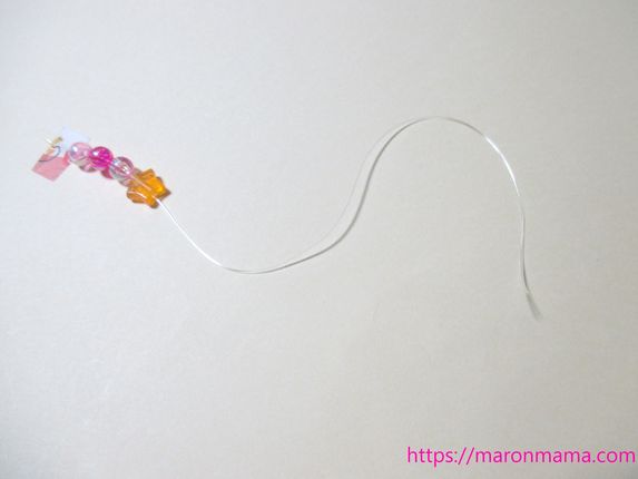 6、その後、作業4と同じように、小さめのビーズを通します。