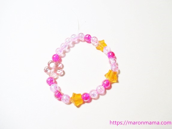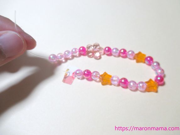 ビーズブレスレットに付けるリボンの作り方は、後ほどご紹介させていただきます。