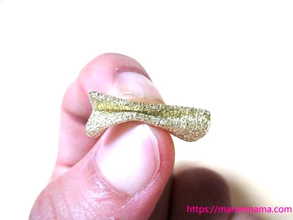 今回は、子供が好きなキラキララメのリボンを使って作ってみました♪
