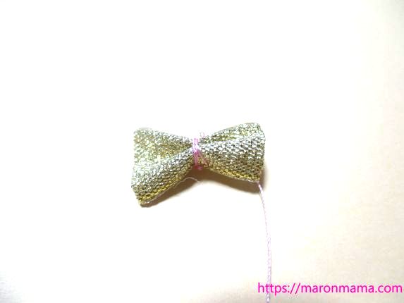 このとき、リボン中央を糸で縫っても良いし、ぐるぐると巻き付けてもOKです。
