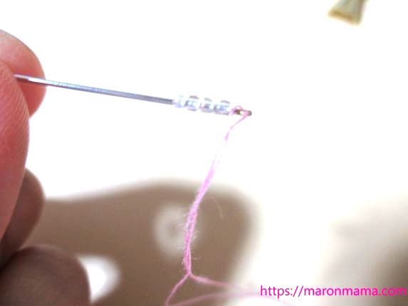 小さめのビーズは針にビーズの穴が通るものが好ましいです。