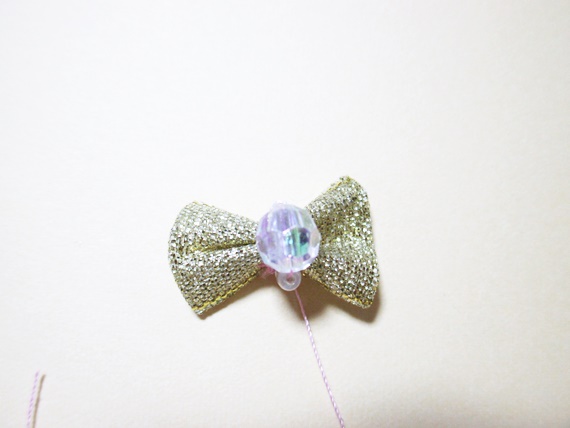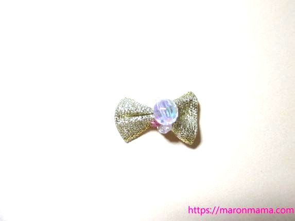 リボンの真ん中にカットビーズを使用しますが、このビーズもお好みで変えて下さい。