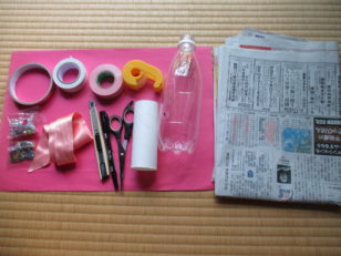 魔法のステッキを手作りするのに必要な材料(ペットボトルや新聞紙)