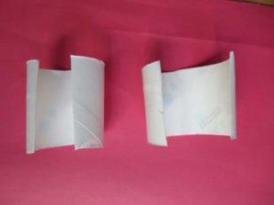 1、トイレットペーパーの芯を縦に切り、横半分に切る。