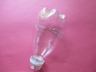 6、ペットボトルの上部と下部を合わせ、セロファンテープでしっかりととめます。