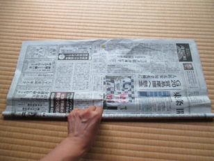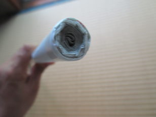 12、白いカレンダー又は包装紙を上から巻き、セロファンテープでしっかりとめます。