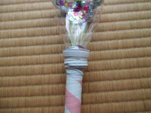 また、棒の部分もカラフルにキラキラテープを巻いて、可愛いく仕上がっています^^