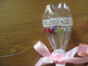 上のペットボトル部分はマスキングテープや、キラキラハートのシールを貼って飾り付けしています♪